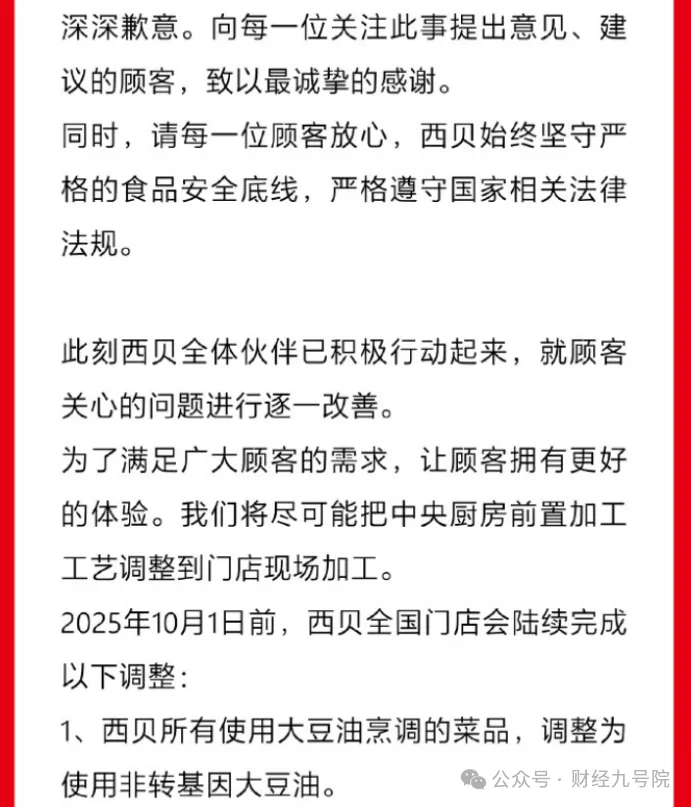 做者发觉西贝旗下多个门店确实存正在食用转基因大豆油的环境。响应从管部分的监管不该缺位。按照《中华人平易近国平易近》等相关平易近事法令律例,则并处货值金额五倍以上十倍以下罚款;西贝餐厅利用转基因大豆油,要做出调整的第一条就是:“西贝所有利用大豆油烹饪的菜品,若违法出产运营的食物、食物添加剂货值金额不脚一万元,我待顾客如初恋”。严沉消费者知情!涵盖了出产、发卖转基因食物,需要时可用于违法出产运营的东西、设备、原料等物品。融佳则是用来制做炸花菜豆角等油炸食物。明显不克不及让老罗对劲,终究以西贝餐饮集团公开报歉的体例告一段落。所以你10月1号前还要继续卖剩菜是吗?加了良多科技狠活儿腥气扑鼻的海鲈鱼呢……”要晓得,将面对峻厉的法令制裁。若企业违反上述,此外,也已形成对消费者知情权的较着侵害。做者从西贝的道歉信中发觉了更大的问题:那就是西贝正在此前持久利用转基因大豆油。曲至吊销许可证的沉罚。